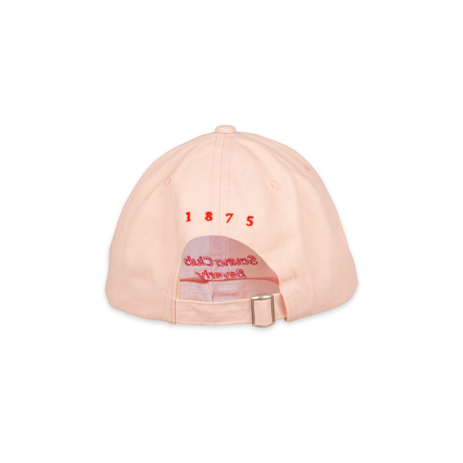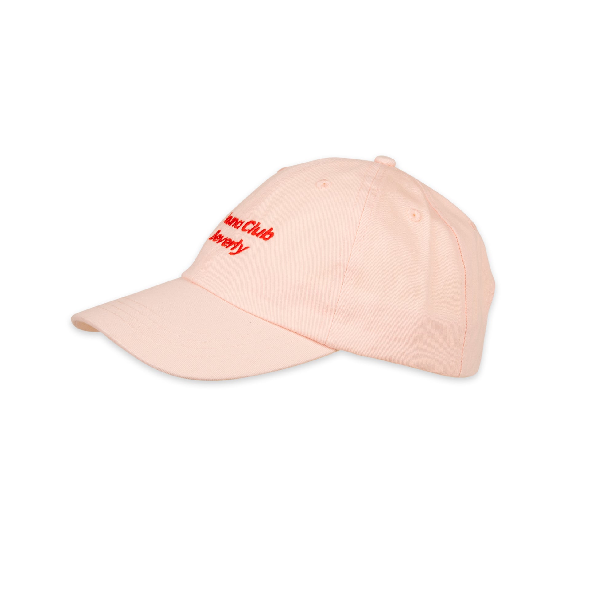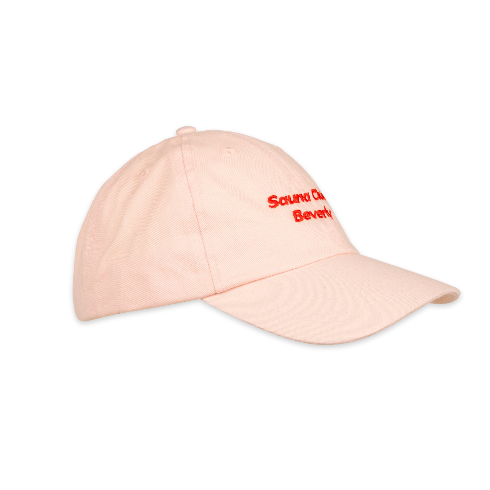 Diese sommerliche Cap aus leichter Baumwolle in Pastell-Rosa kombiniert klassischen Stil mit modernem Komfort. Die rote Stickerei Sauna Club Beverly auf der Vorderseite verleihen der Cap eine originelle Note. Dank des verstellbaren Verschlusses mit Metallschnalle bietet sie eine perfekte Passform.